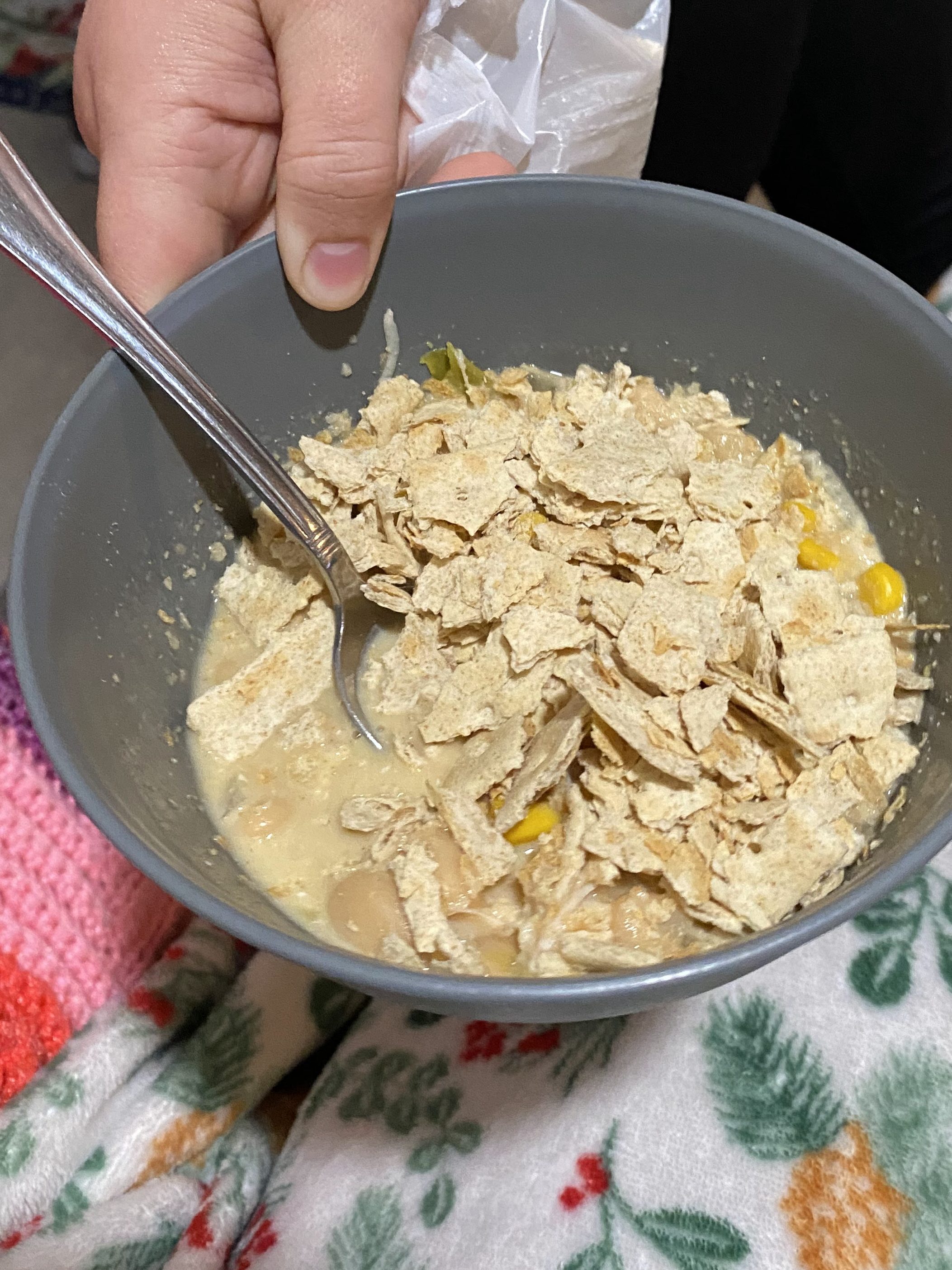 Dinner: White chicken chili with saltine crackers